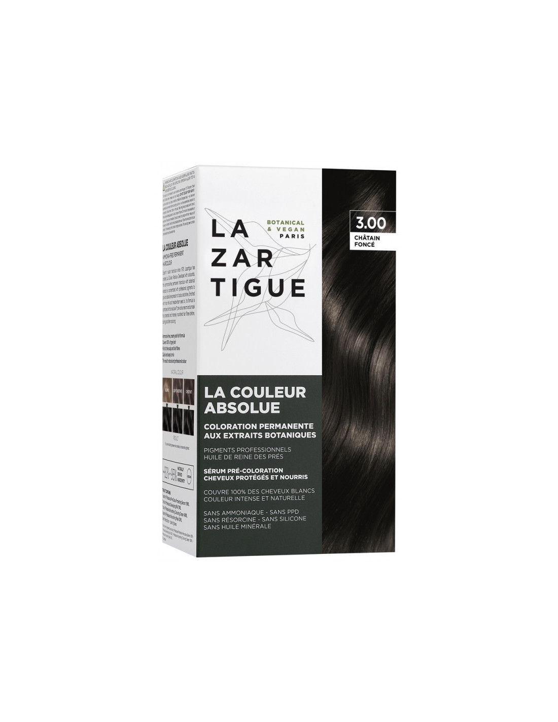 Lazartigue La Couleur Absolue - Coloration : 3.00 Châtain Foncé est une coloration permanente aux extraits botaniques et concentrée en pigments professionnels pour une expression absolue de la couleur et de la brillance.