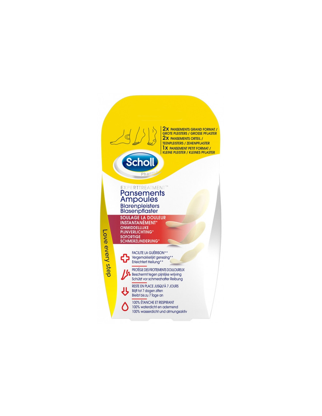 Pansements ampoules ExpertTreatment de Scholl, conçus pour soulager la douleur liée à la présence des ampoules au niveau des pieds.