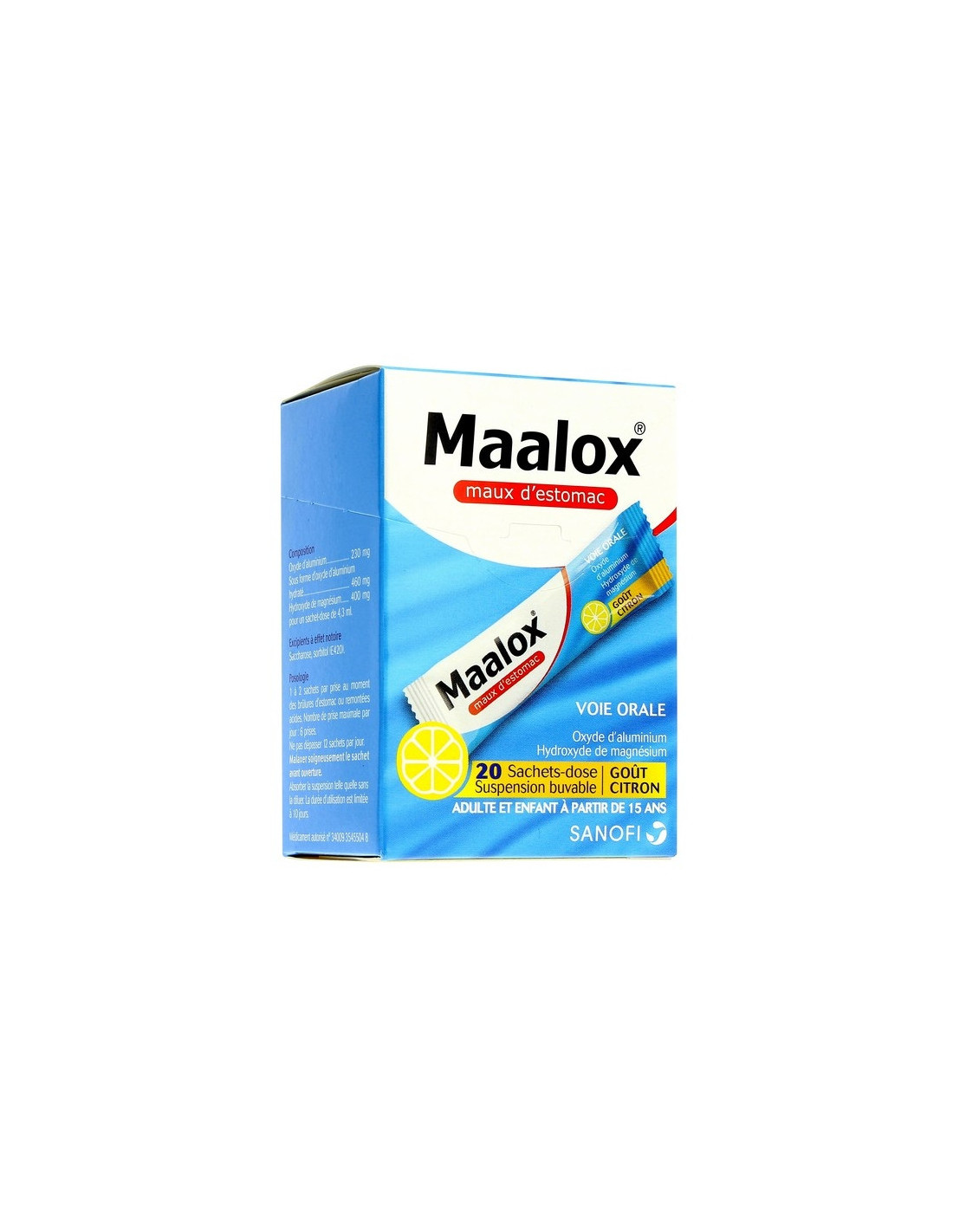 - Ce que contient MAALOX MAUX D’ESTOMAC HYDROXYDE D’ALUMINIUM/ HYDROXYDE DE MAGNESIUM 460 mg/ 400 mg, suspension buvable en sachet