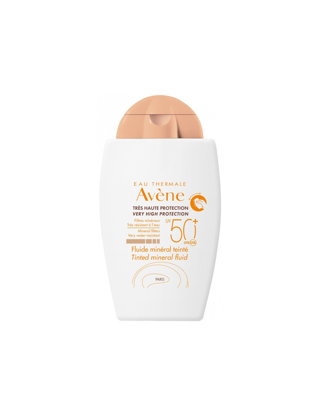 Avène Fluide Minéral Teinté SPF50+ 40 ml est un fluide teinté protecteur de très haute protection spécialement formulé pour les peaux sensibles, fragiles, les peaux intolérantes aux filtres chimiques et aux parfums.Il offre une très large protection vis-à-vis du spectre UV grâce à son association exclusive d'actifs :